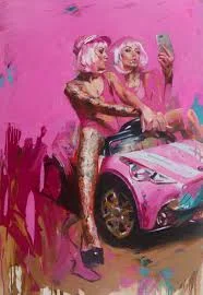 I bought Pink Car Selfie by Chris Guest, it hangs in my hallway.